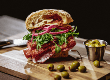 To wrap up the class, you’ll slice your freshly baked Ciabatta and build a gourmet Italian sandwich using: