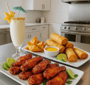You’ll make Sweet Chili Glazed Chicken Wings that are sticky, spicy, and irresistible; fold and fry golden‑crisp Crab Rangoon; and roll your own Shrimp Egg Rolls served with a punchy hot mustard sauce. To top it all off, you’ll shake up a fresh, sunny Piña Colada—the perfect sip to celebrate your kitchen victories.