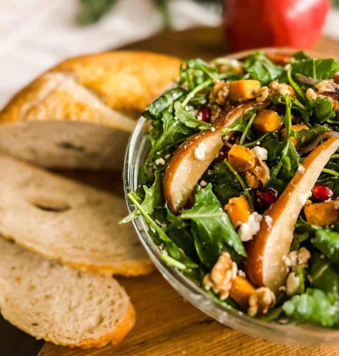 Winter Greens & Pear Salad with Blue Cheese- knife skills and balancing flavors