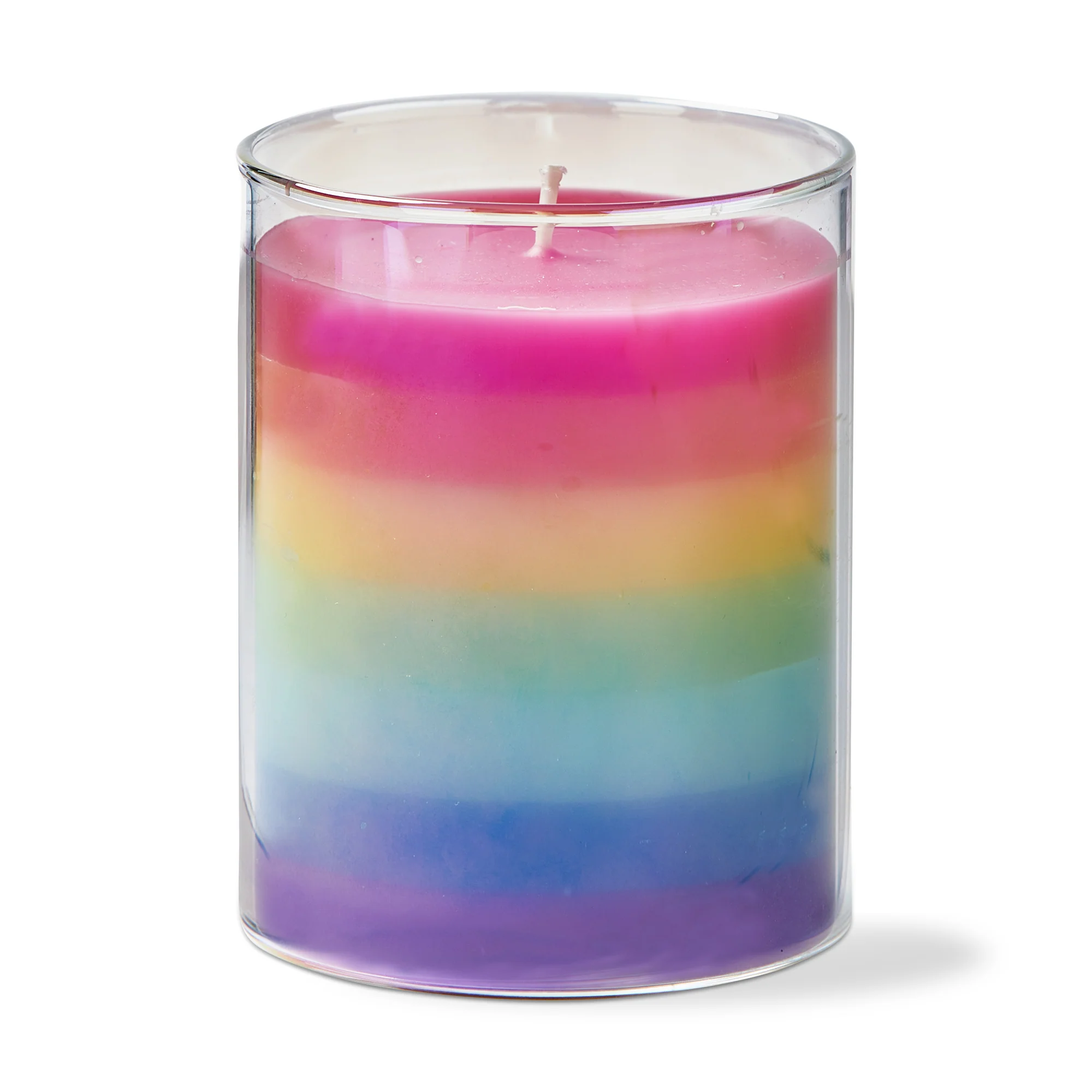 A great birthday gift! This soy wax candle in a glass jar smells just like a vanilla cake with fragrance notes of vanilla cream, vanilla, milky coconut, and caramel. Features a multi-colored rainbow appearance and a cotton wick.
