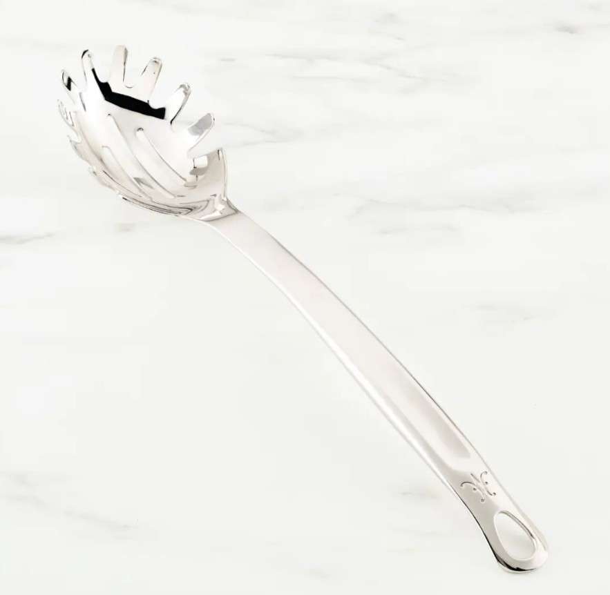 This 13-inch pasta fork features a beautifully precise stainless steel handle and optimized prongs to better hold and transfer all types of pasta. With an artisan-polished finish and Hestan monogram, it is easy to admire.