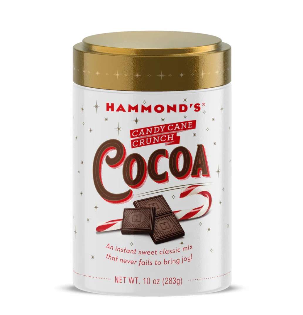 Get into the holiday spirit with Hammond’s Candy Cane Crunch Cocoa – the perfect treat for winter or Christmas. Made with rich, all-natural ingredients, this cocoa is sure to become a holiday tradition in no time. Simply mix the hot chocolate mix in a tall mug of hot milk and enjoy a deliciously rich, creamy, and peppermint packed drink.