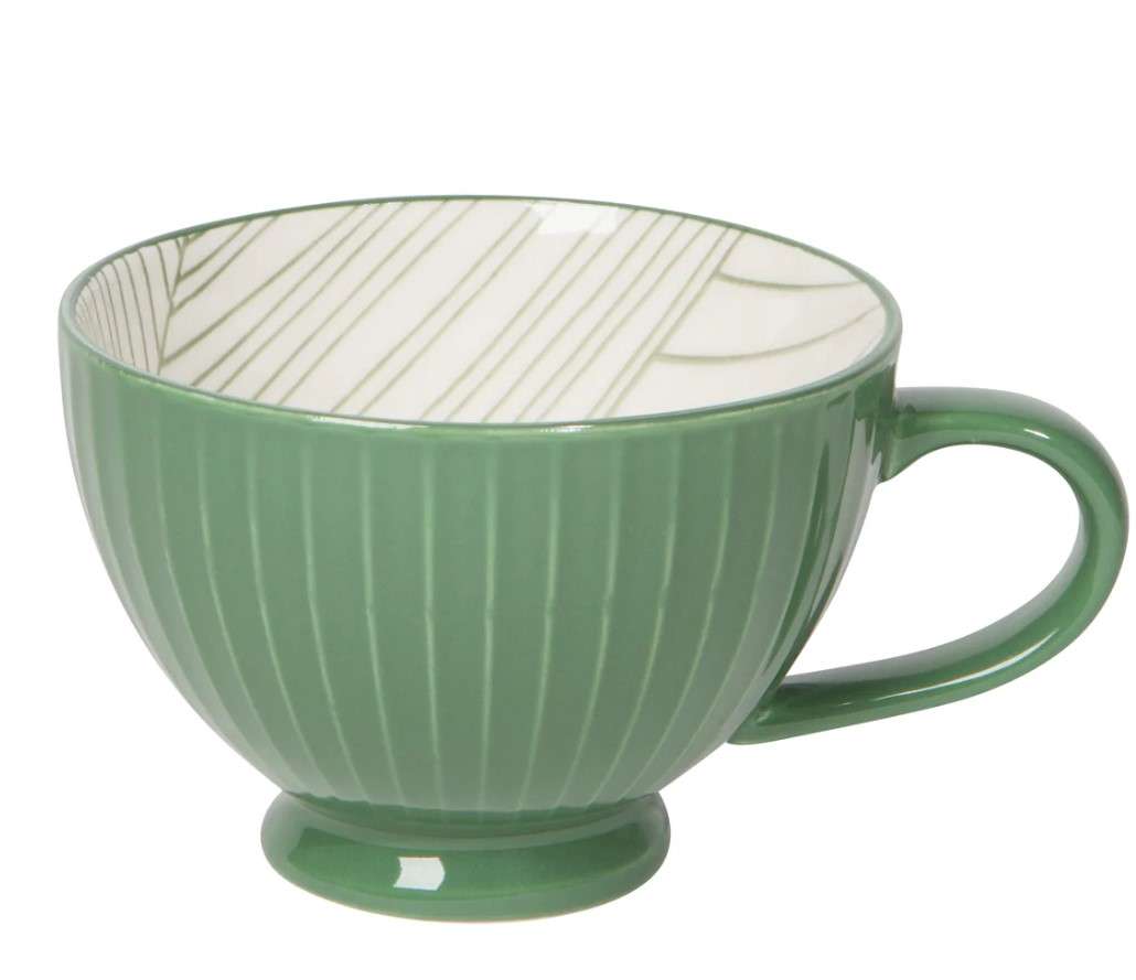 Broad latte mugs are ideal for long, languid cups of coffee. Whether printed or plain the curved style is destined to be an everyday favorite