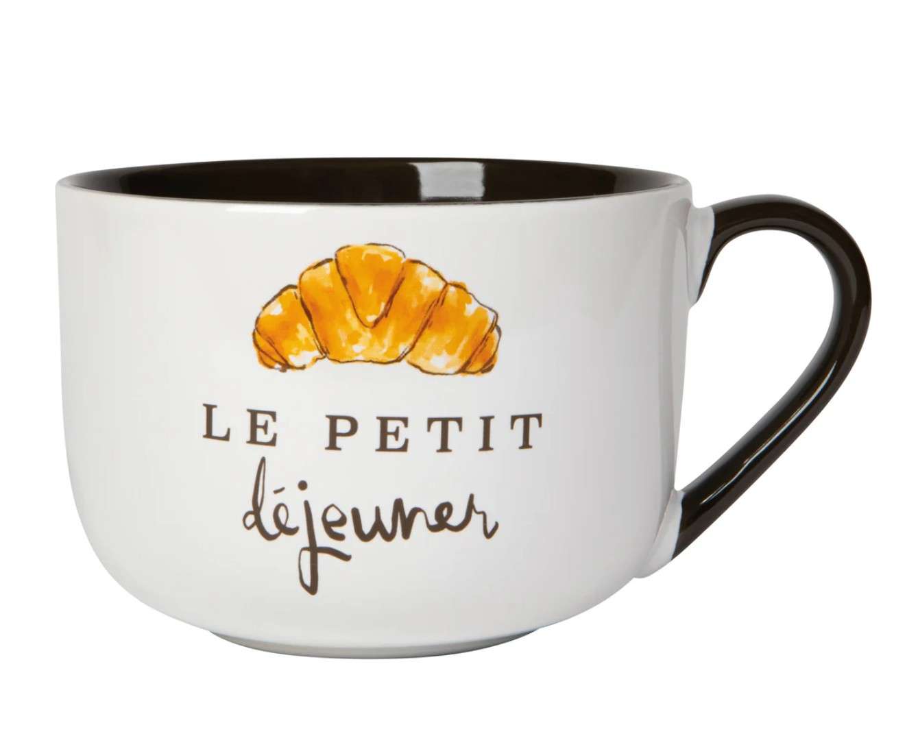 The broad Le Petit Dejeuner latte mug is ideal for long, languid cups of coffee. Printed on the outside and plain on the inside, the oversized style is destined to be an everyday favorite. Begin the day with a très chic breakfast: a buttery, flaky croissant and a latte. This iconic crescent-shaped pastry brings the charm of a Parisian café to any kitchen.