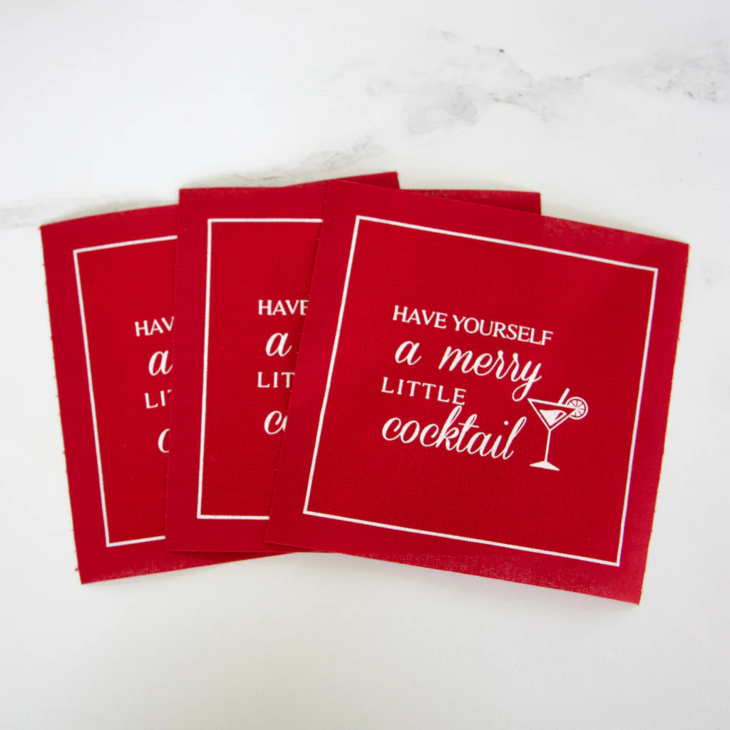 100% biodegradable and recyclable cotton, elevating the look of any table or bar. 50 cocktail napkins per roll with an easy perforated seam separating each piece. 16 chic colors to create hundreds of combinations to use year-round. A truly unique look to complement any drink. Â Each cocktail napkin is 4.5 in. x 4.5 in. with a white border around the edge, giving a classy and refined look and feel. Surprise and delight your family and guests with these festive cocktail napkins.