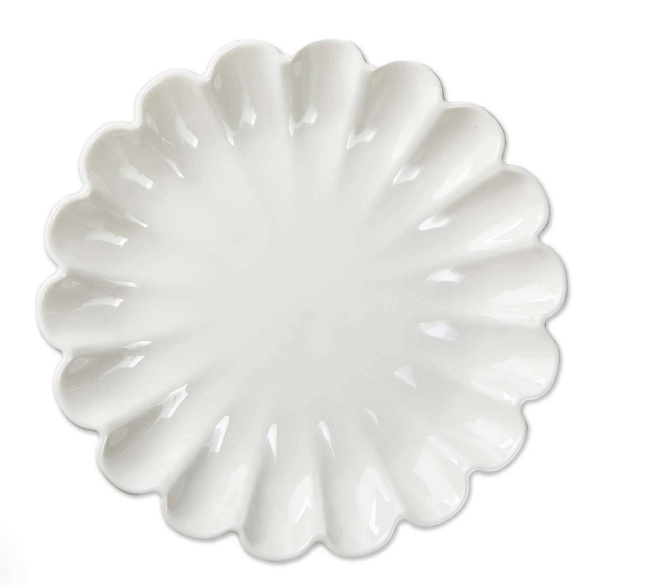 Add a touch of elegance to your table setting with the scallop plate. crafted from white earthenware, this sculpted plate features a beautiful scalloped edge that is sure to impress your guests. dishwasher-safe for easy cleanup.